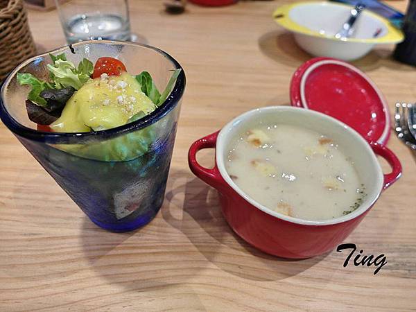 沙拉:上面的醬酸酸甜甜的,不錯吃