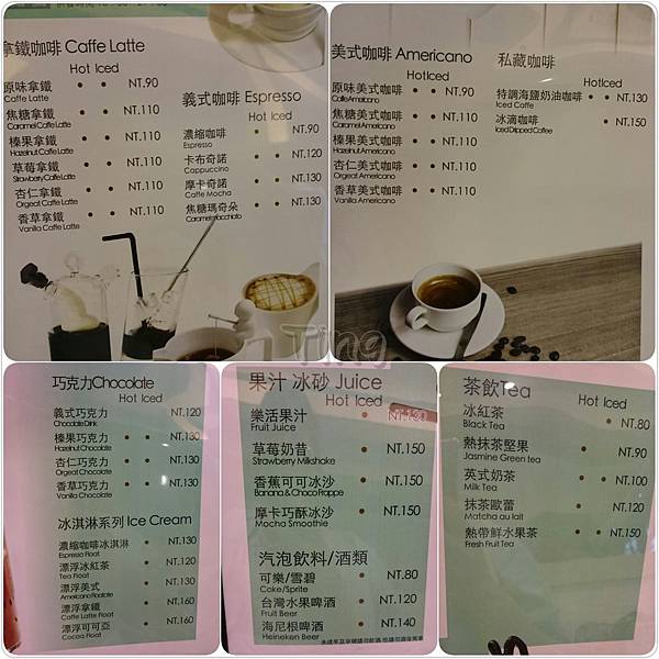 拿鐵咖啡、美式咖啡、私藏咖啡、巧克力、果汁、冰沙、茶飲