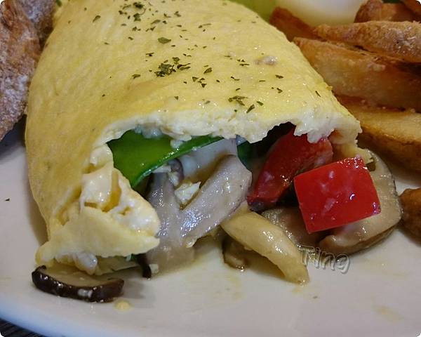 裡面放了甜椒、菇類、豆子、橄欖等…