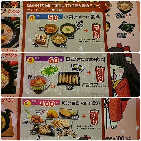 可選擇組合套餐(三選一) 我們這次選A套餐
