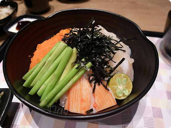 旁邊還有高麗菜絲、日式和風醬、拌飯醬、海帶芽