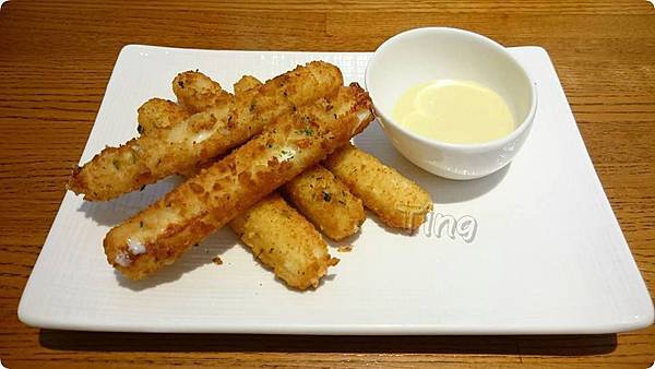 沾醬是蜂蜜芥末,起司條吃到會牽絲呀~