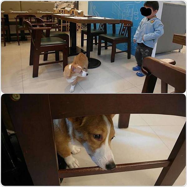 上圖是吃到一半狗兒跑來我這,連其他桌的小朋友也來這兒找狗兒玩