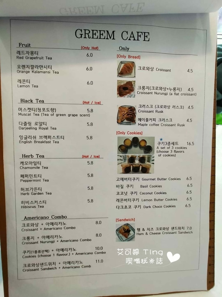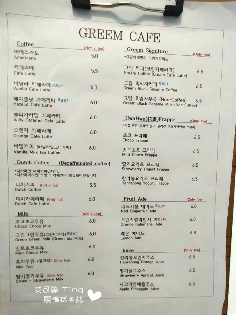 Menu,主要是韓文、英文,如果看不懂,可以使用Papago翻譯看看,點完想要的餐點後,在櫃檯直接點餐並結帳