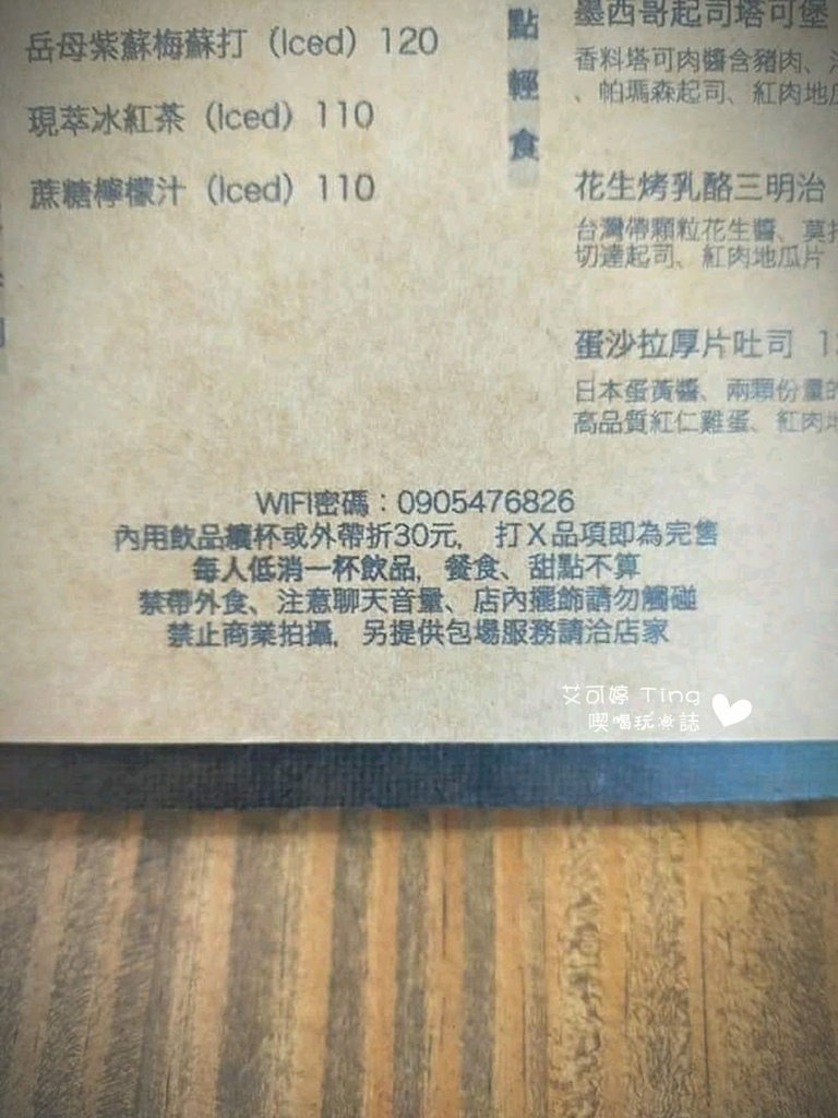 低消:一杯飲品、餐食、甜點不算