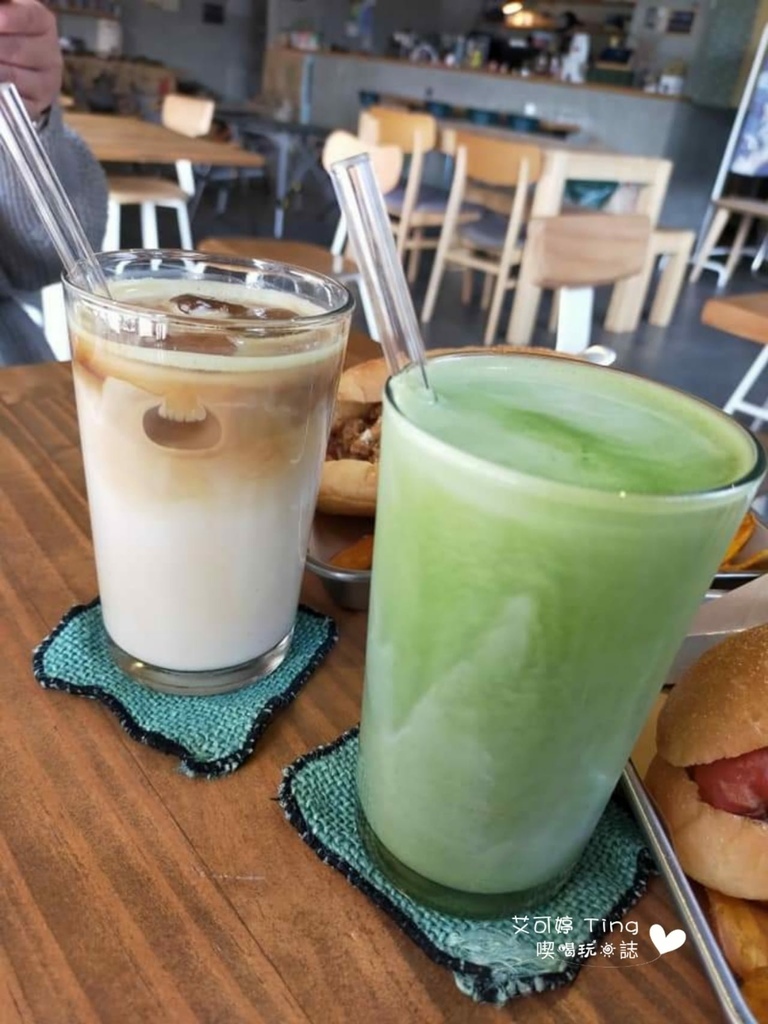 抹茶歐蕾喝起來味道ok,拿鐵咖啡友人喝起來覺得比較淡,他是說他咖啡本身喝比較重口味,他點的是咖啡加牛奶,多少咖啡味會被沖淡吧?!