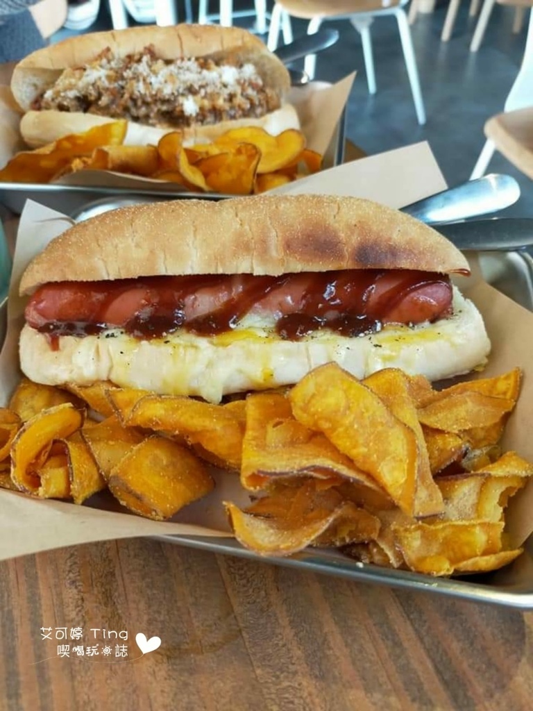 焗烤起司熱狗堡吃起來味道還可以,只是熱狗的皮......非常難咬斷@@a