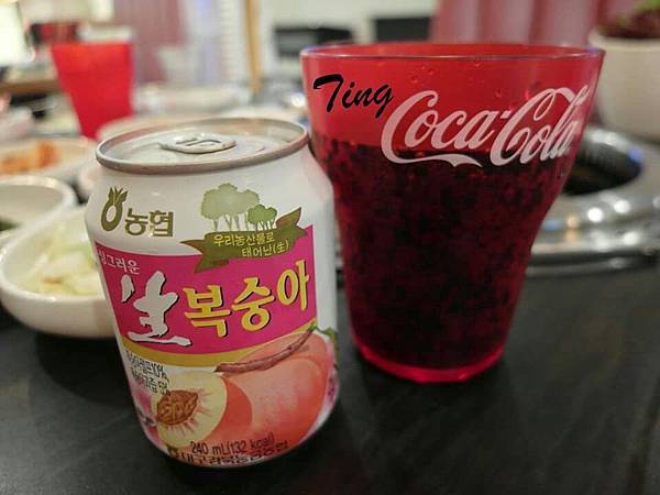 進口韓國果汁-水蜜桃口味、右邊是可樂、另外還有選雪碧