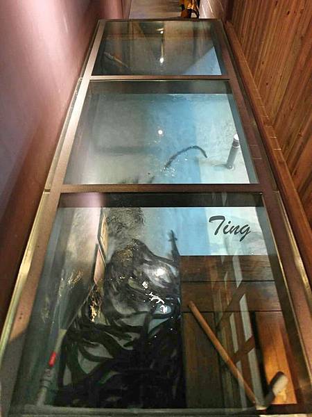 通道上使用透明玻璃,可看到活跳跳的鰻魚