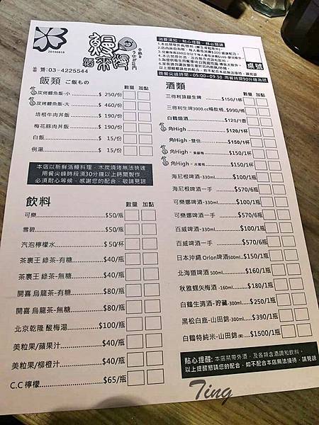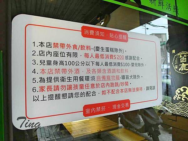 其他:禁帶外食、飲料(慶生蛋糕除外)、只收現金、用餐尖峰時限90分鐘