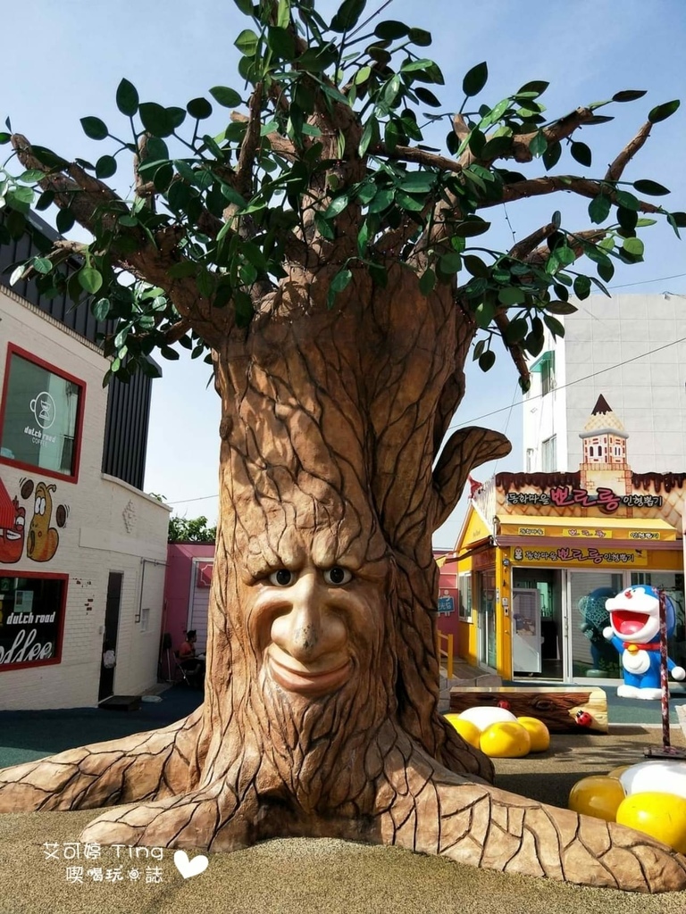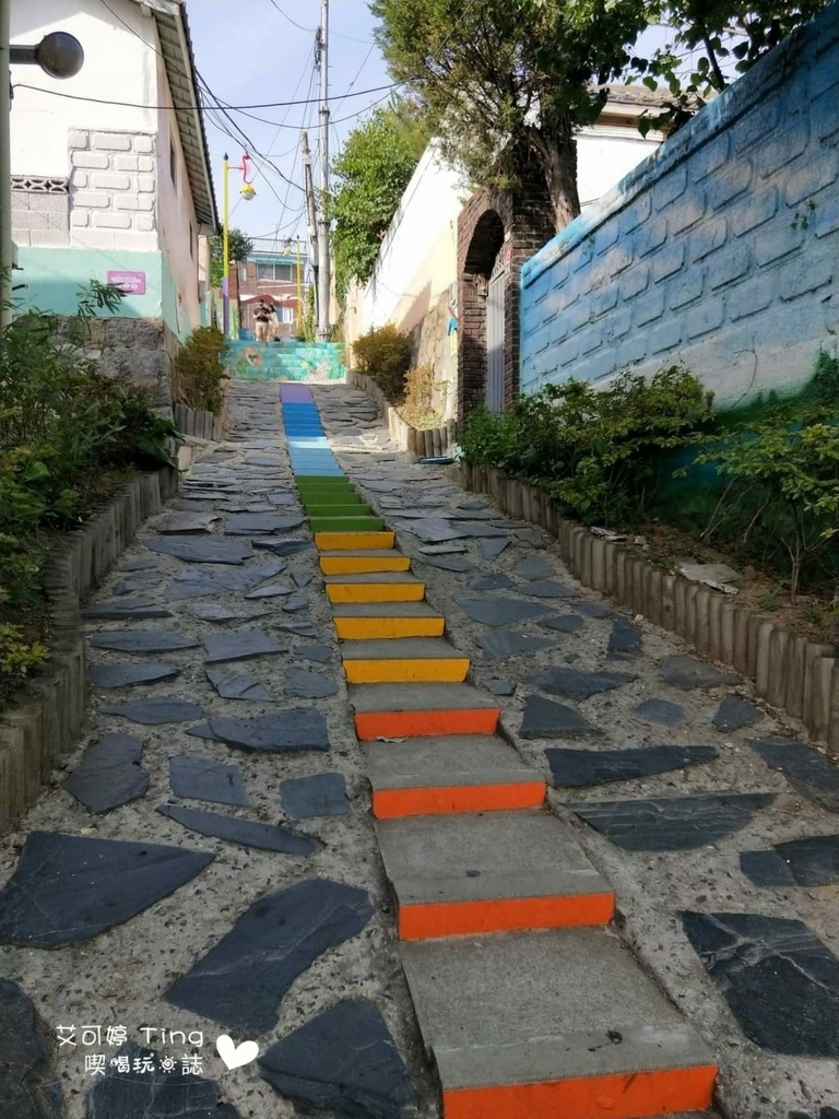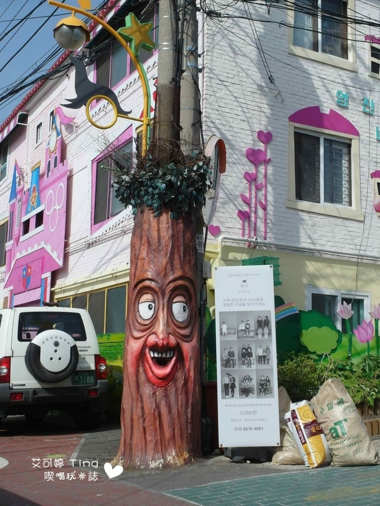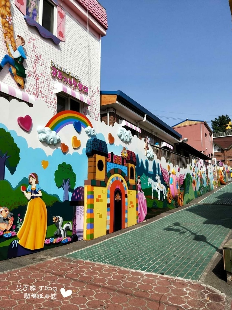 先在共和春吃完午餐後,接著就走來有可愛彩繪塗鴉的「松月洞童話村」走走拍拍照囉~