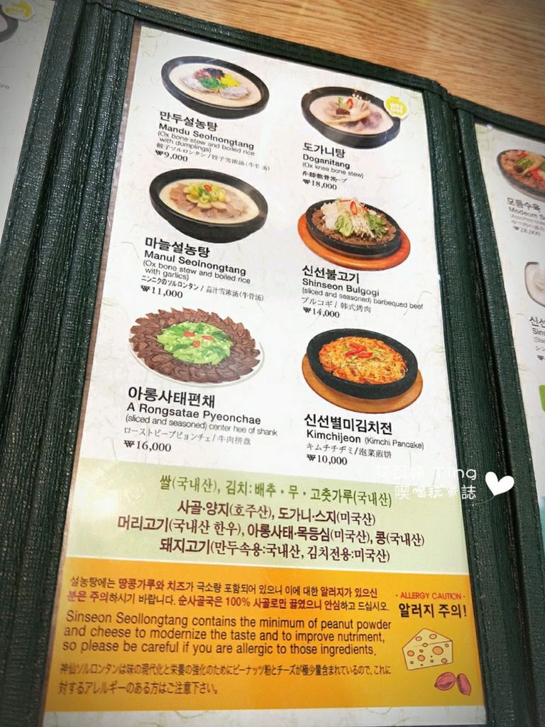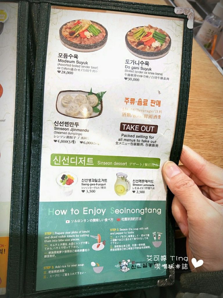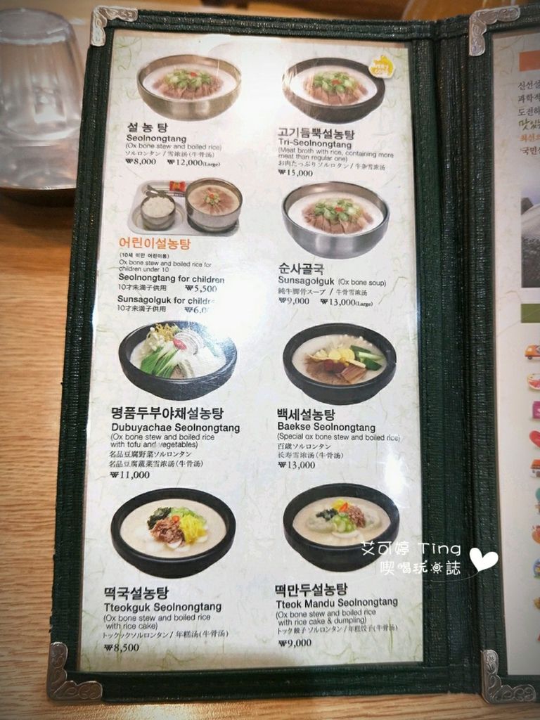 Menu 有中英日韓,所以還是看的懂,第一次來吃就點【雪濃湯 설농탕】-8000w