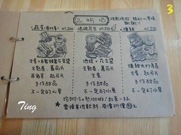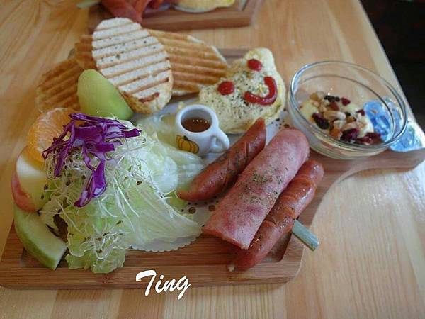 含前菜沙拉+自製蜂蜜芥末醬、全麥土司、軟法麵包、起士牛奶蛋、網狀火腿、德式香腸、手作甜品