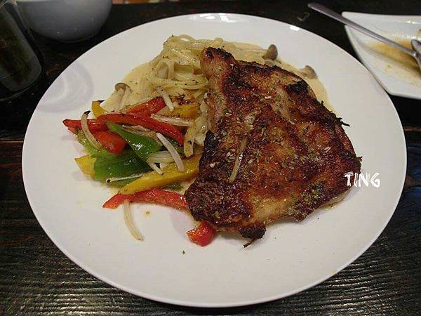 奶油野菇鄉村烤雞腿麵-240元