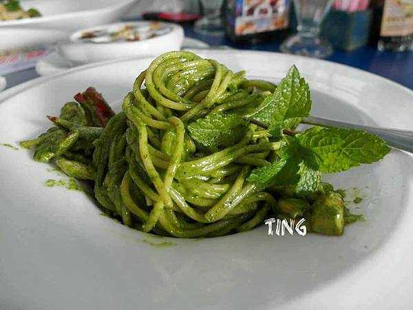 不像一般的義大利麵,店員說這道義大利麵吃起來會比較油一些,因為製作的方法較不同。