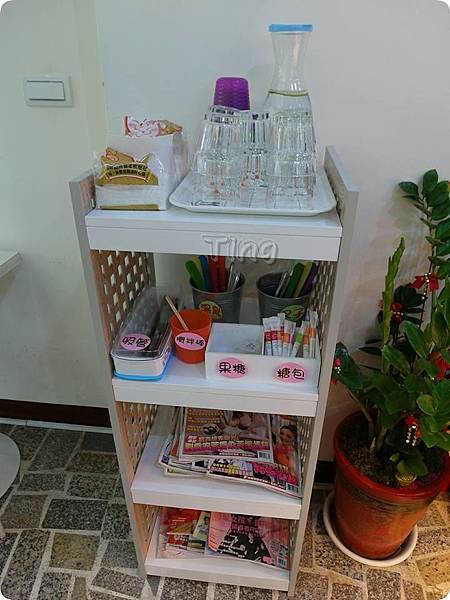 水、吸管、攪拌棒、糖包、果糖等等自助喔