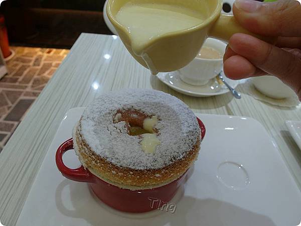 現烤舒芙蕾現做需等候30分鐘且只限內用,有五種口味,我選的是香草口味