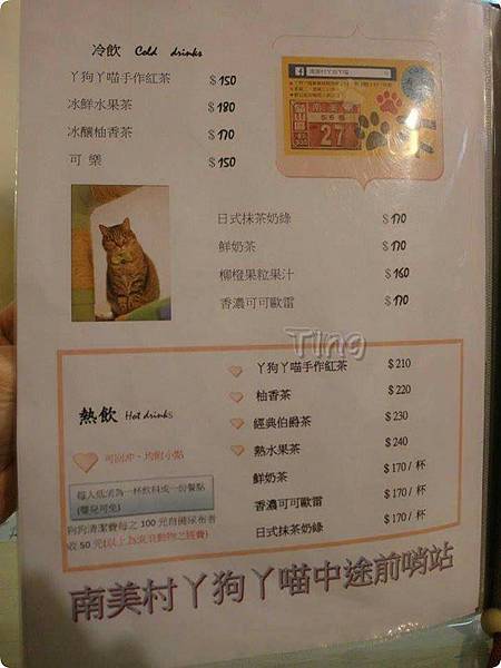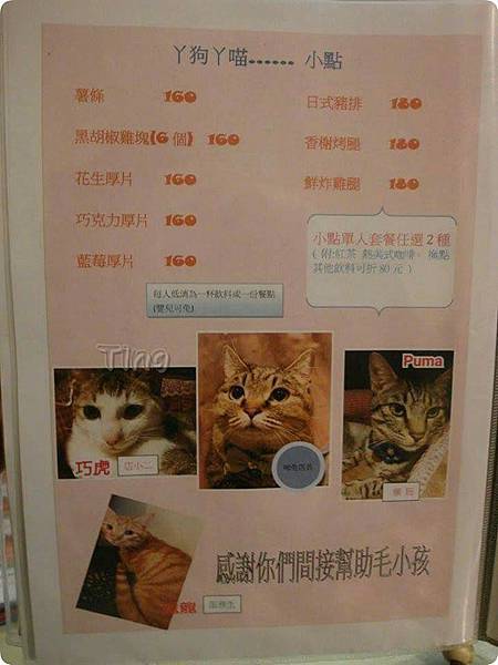 每個桌上都會有店家的Menu,不過不能拿走就只好拍照帶走囉