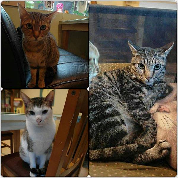 貓兒們,都不怕生的,其中一隻一直把我的腿當成跳板跳到桌上來