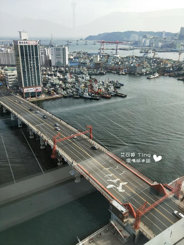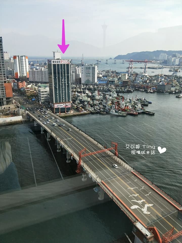 然而除了在橋邊看開橋,在出國前就有看到有人分享可以在樂天樓上往下眺望影島大橋,