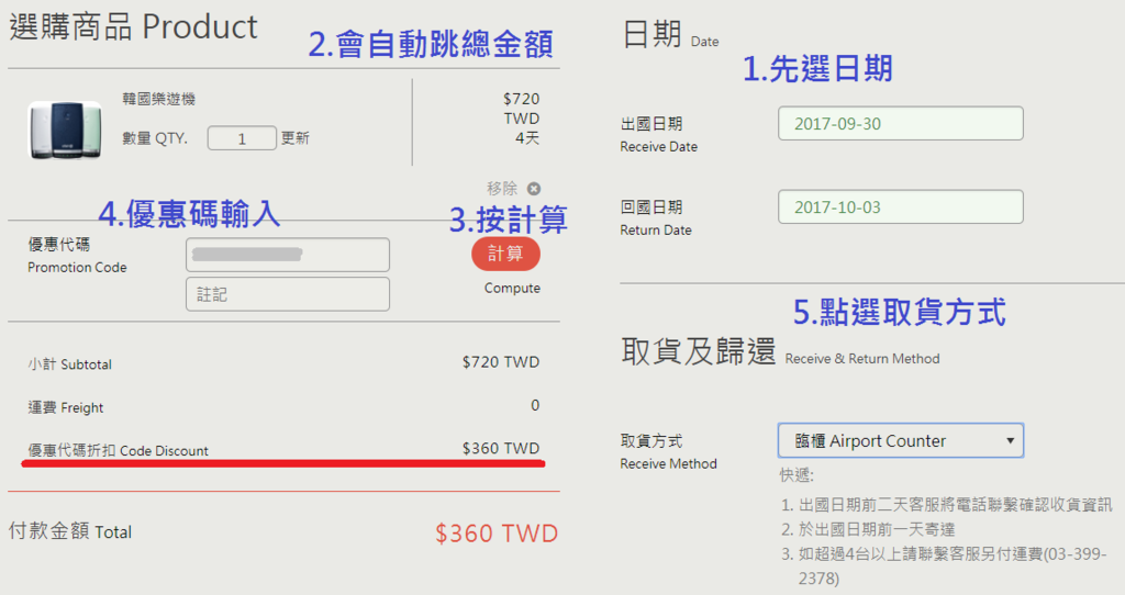 【如果是早班機要請確定櫃台營業時間與您的時間是否可以配合,以確保能順利領取!】