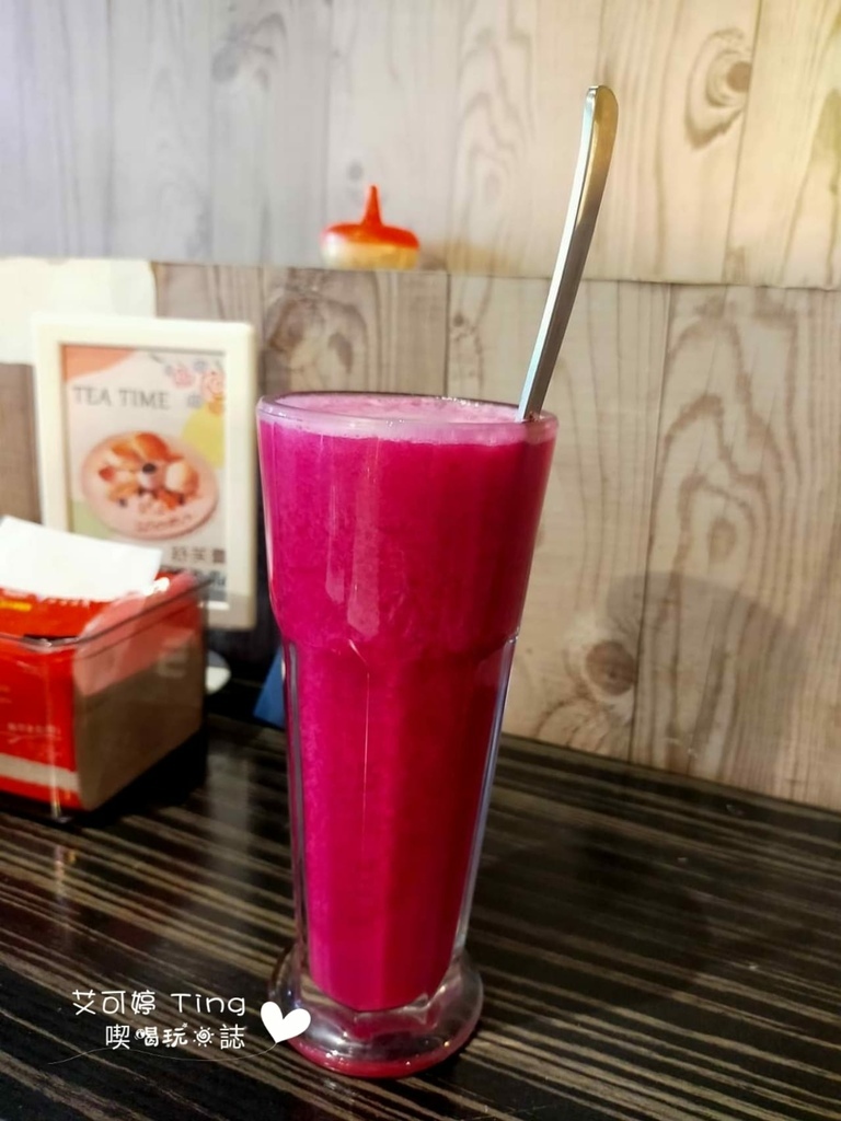 友人點的【火龍果鳳梨】-110元,不會太甜,小朋友也有喝