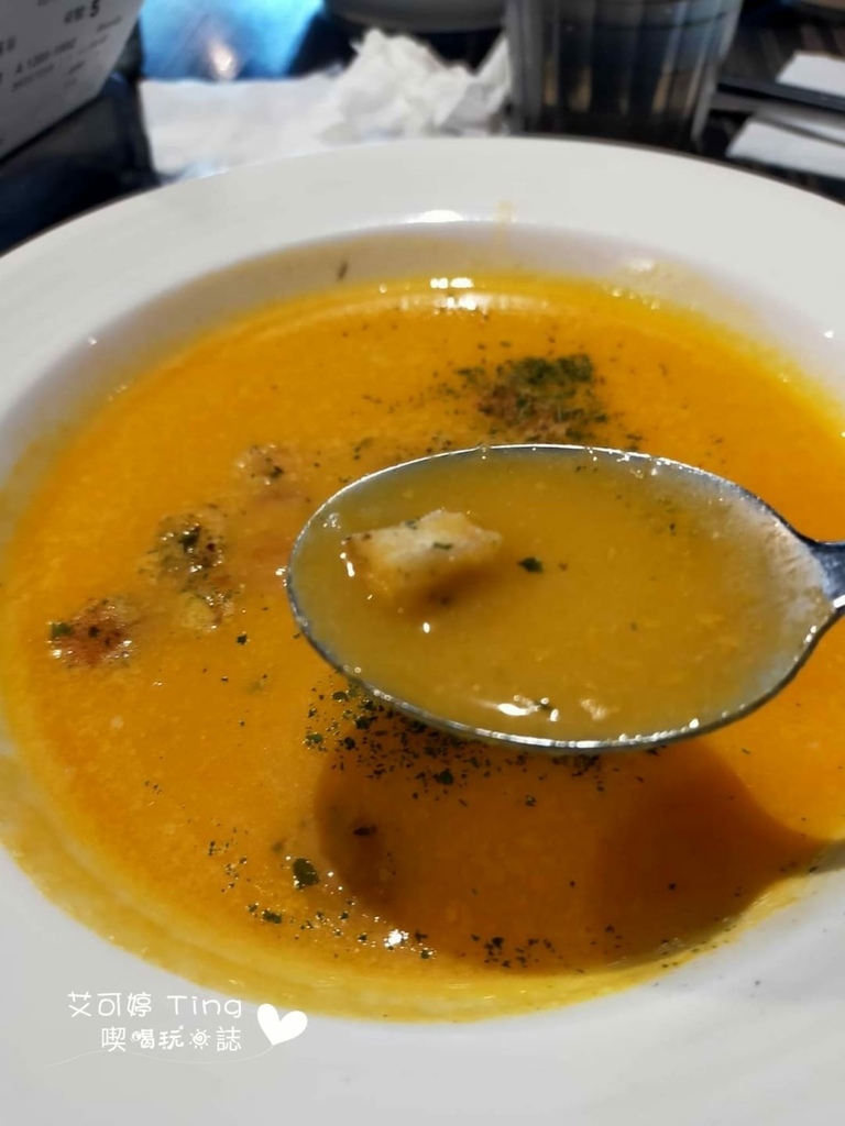 【南瓜濃湯】除了有麵包塊,還有咬到南瓜的顆粒