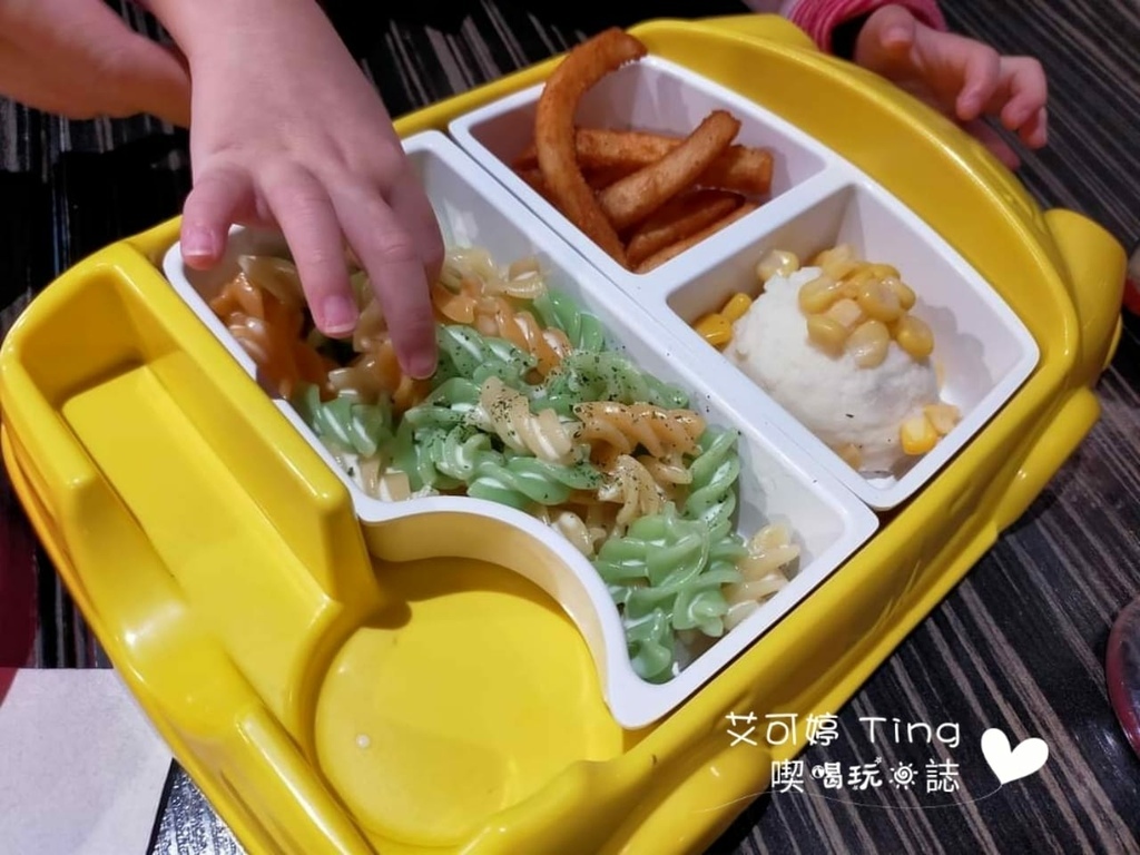 兒童餐【起司白醬螺旋麵套餐】-175元,造型的碗盤很吸引小朋友,但喜不喜歡吃則是要看每個小朋友的喜好了