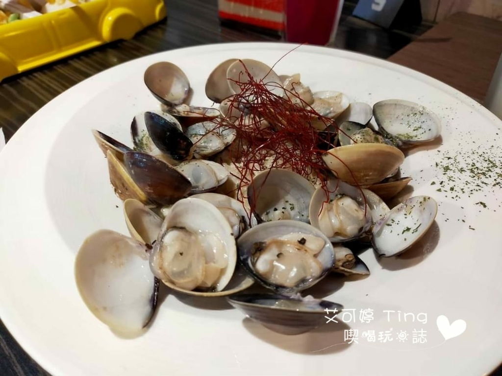 【海味蛤蠣燉飯】-270元,我搭配奶油白醬,整體吃起來口味我蠻喜歡的,沒想到友人的小朋友非常喜歡蛤蠣~~