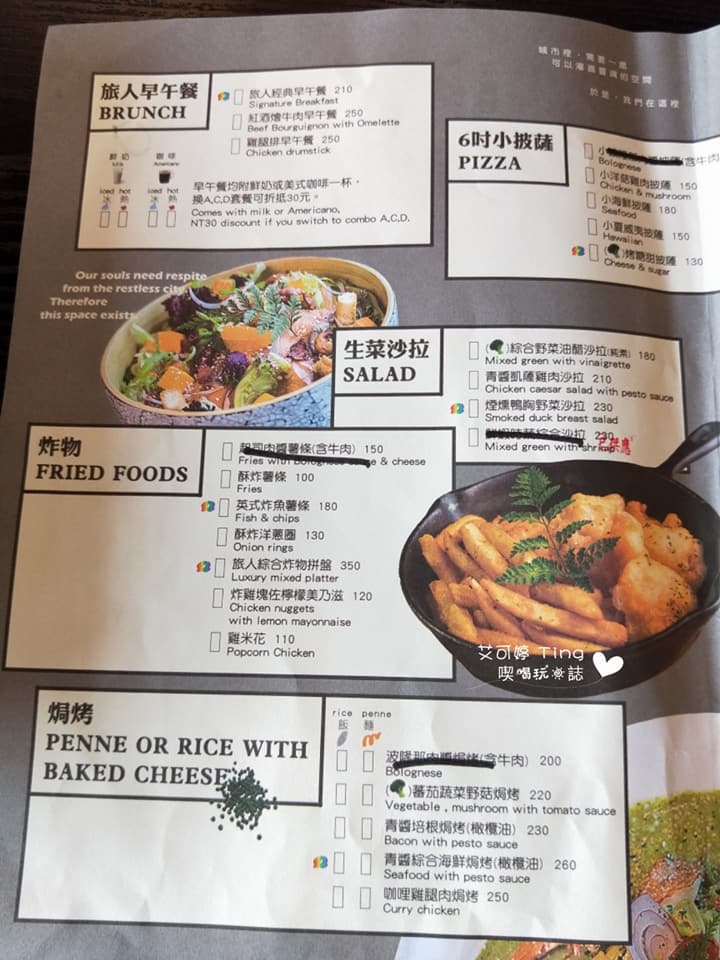 有提供早午餐、小披薩、生菜沙拉、炸物、焗烤
