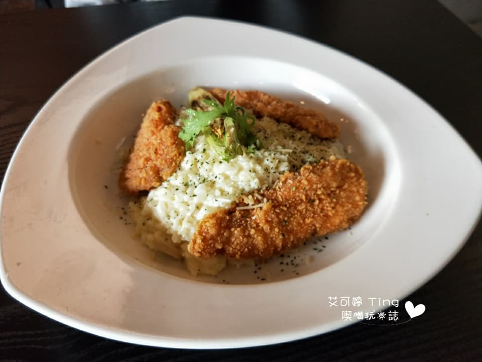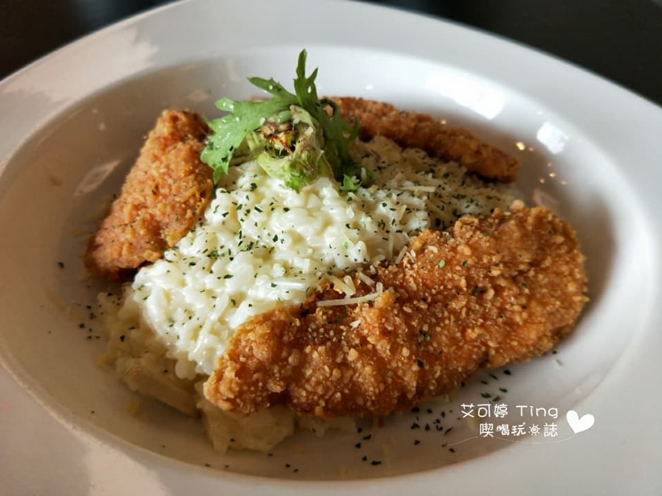 Rince點的【奶油洋菇佐酥炸雞柳燉飯-250元】