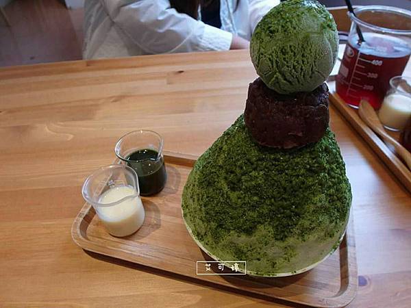 對我們來說抹茶冰淇淋偏苦,不過可接受,可配蜜紅豆一起吃,所以煉乳跟抹茶漿幾乎是沒用到,