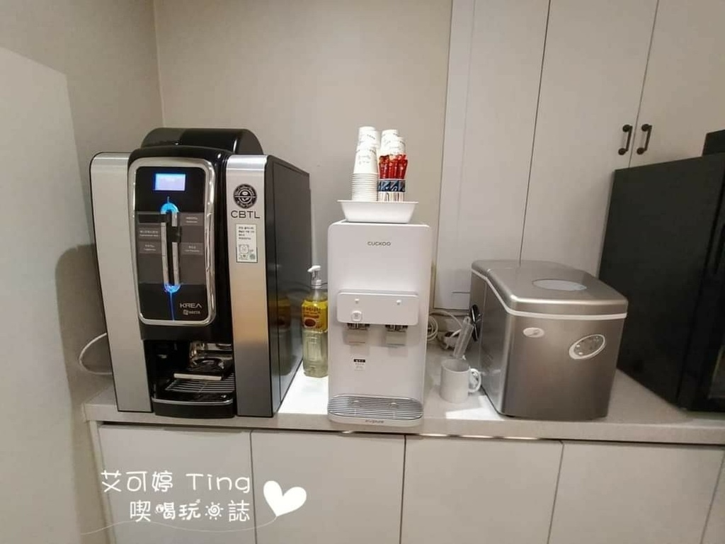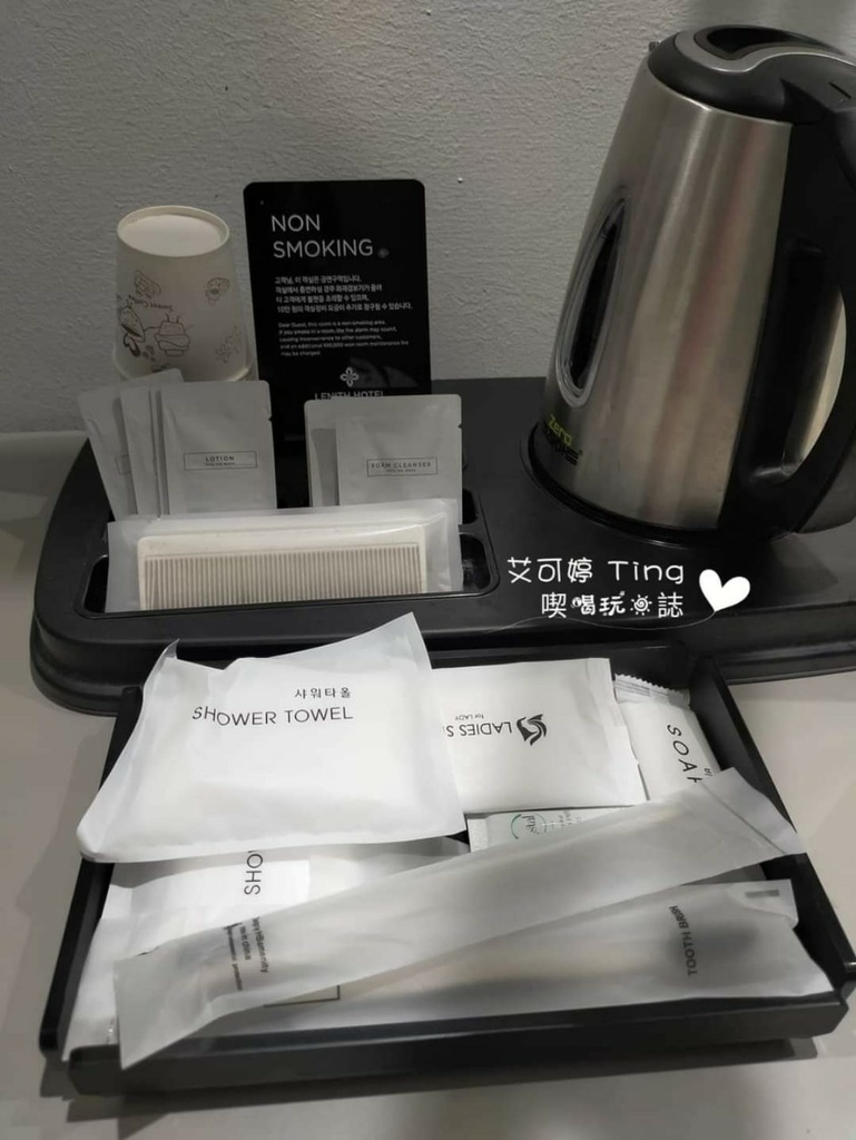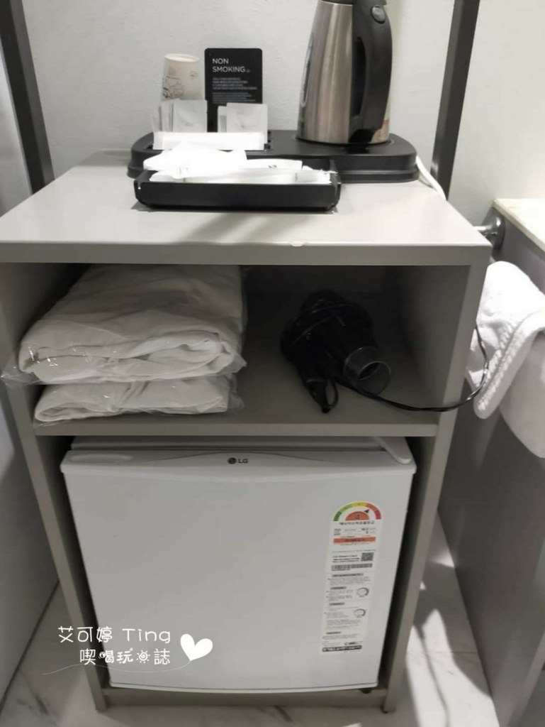 整體簡單乾淨,提供免費礦泉水、小餅乾、韓國泡麵、牛奶和果汁可以使用