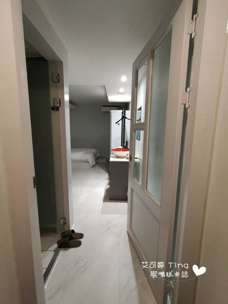 經過浴室後,靠近門有洗手台,第一次看到洗手台是在外面的(在網路爬文前就知道了),感覺周圍很容易用到溼答答的,稍嫌不便