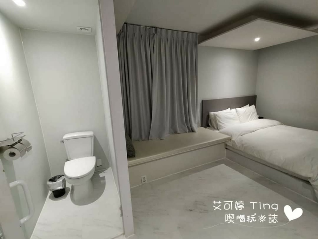 這次的房型訂到的是一張雙人床,睡覺就比較會影響到對方,但,對我來說好像還好,那個窗簾後面沒有什麼景色可以看,就拉起來就好
