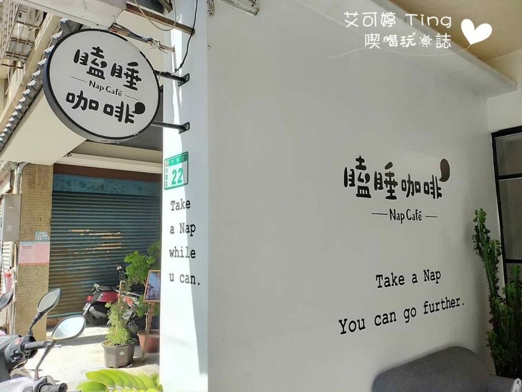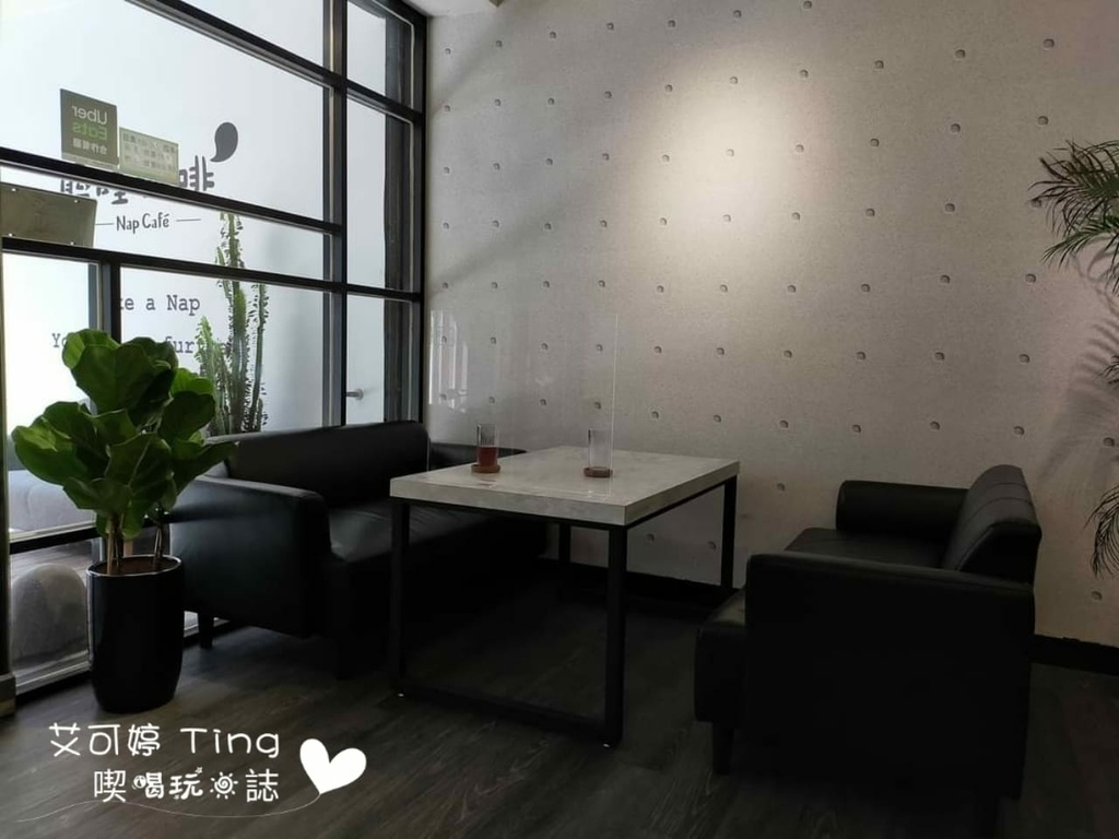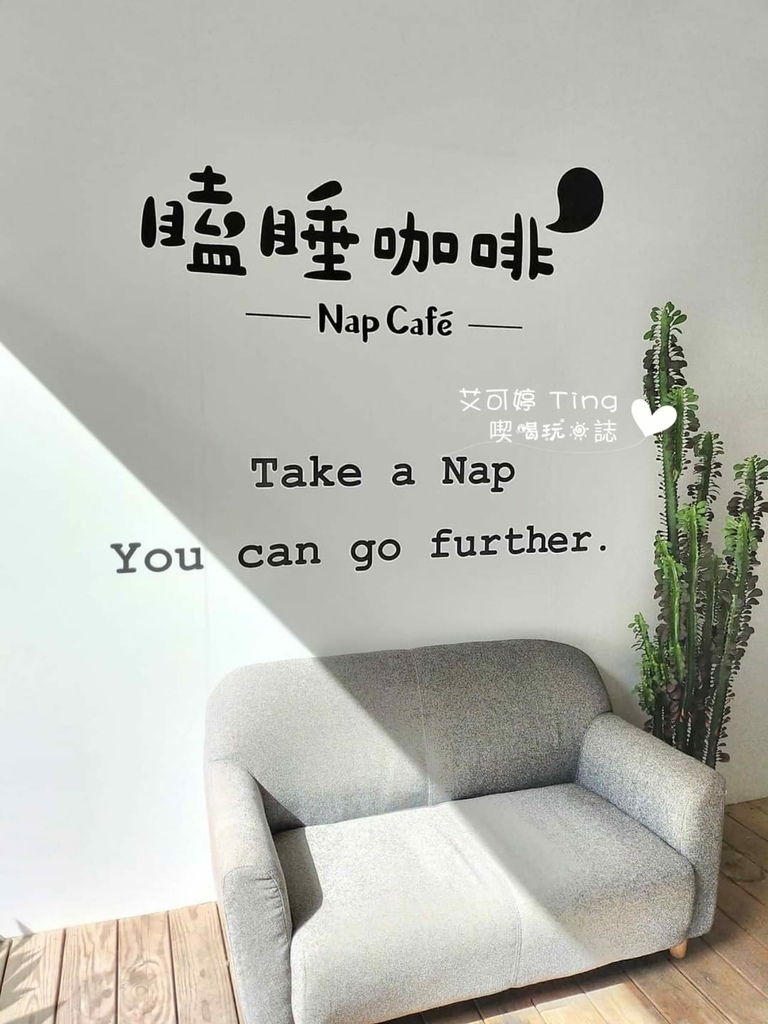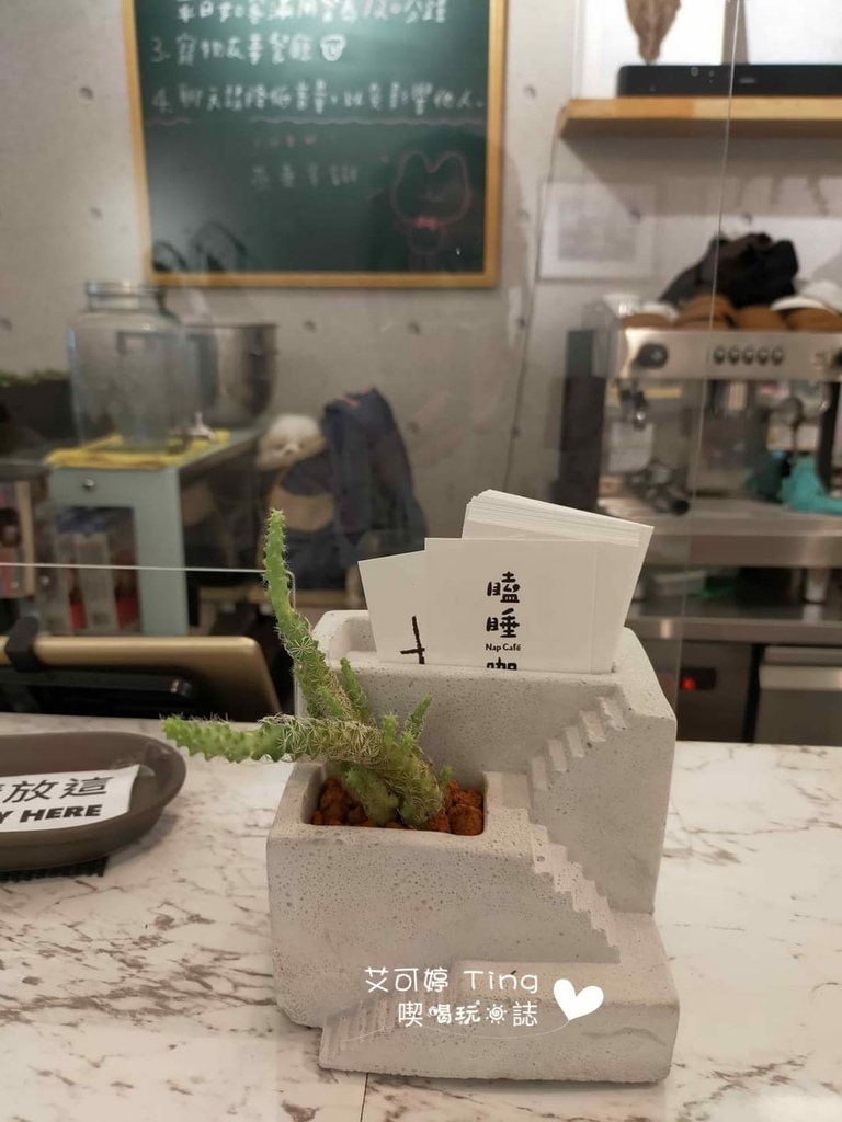 木地板搭配多肉植物,搭配一面純白的瞌睡咖啡打卡牆,有一陣子時常在社群上看到