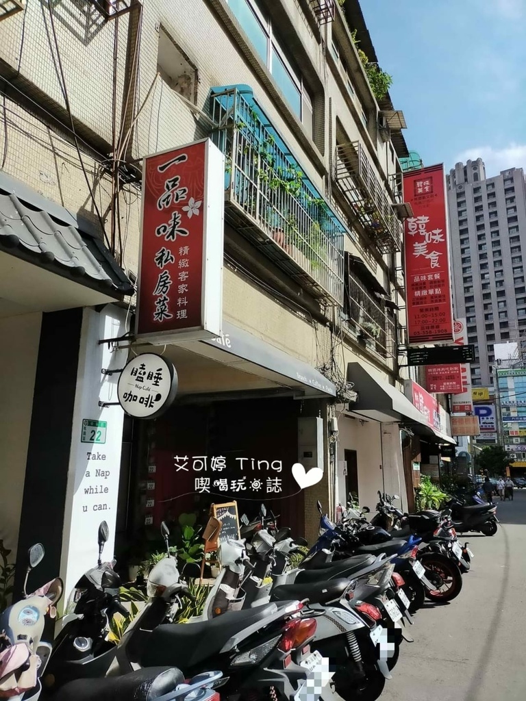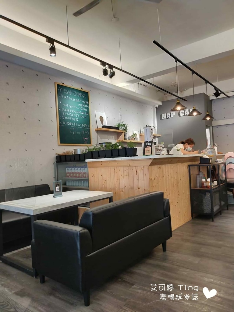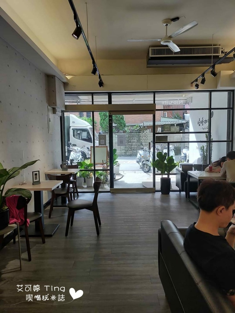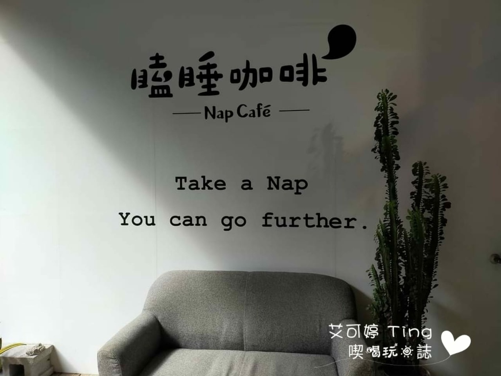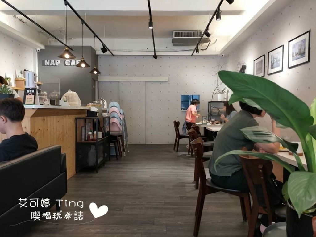 木地板搭配多肉植物,搭配一面純白的瞌睡咖啡打卡牆,有一陣子時常在社群上看到