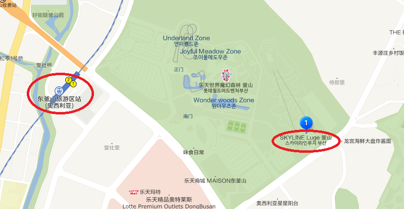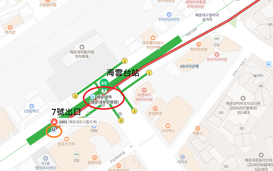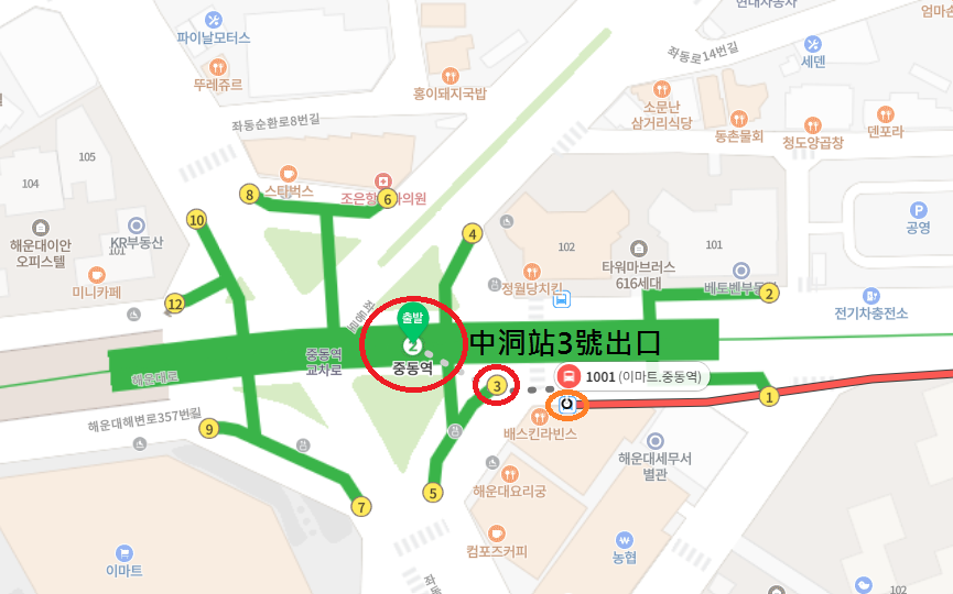交通:地鐵到2號線 202【中洞站 중동역】/ 203【海雲台站 해운대역】轉搭1001號、181號、100號公車【Naver 地圖】【Naver 地圖】