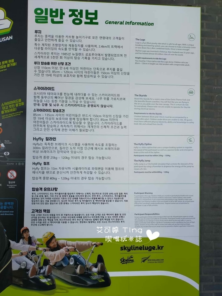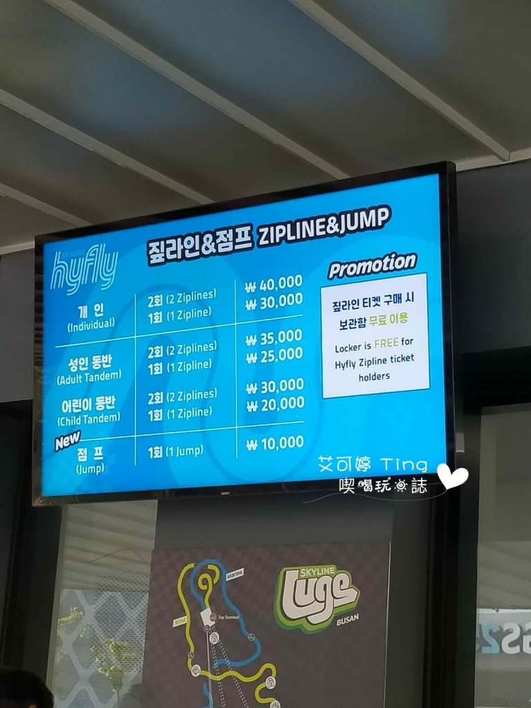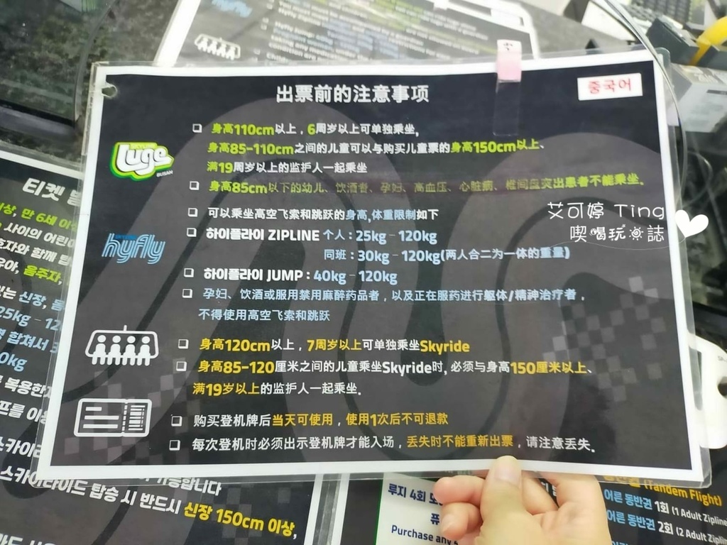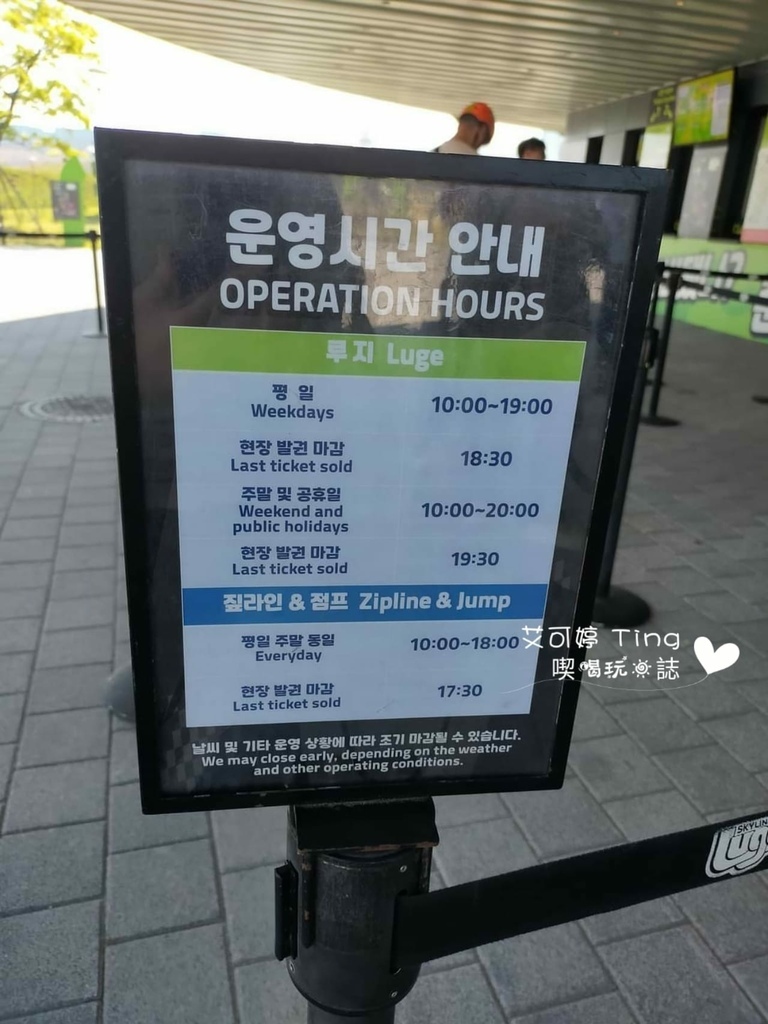 高空飛索(짚라인):10:00-18:00(Last ticket sold 17:30)