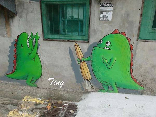 這是在我們看完彩繪階梯後往階梯旁轉角進入巷子,更可看到周邊牆面皆繪有特色彩繪