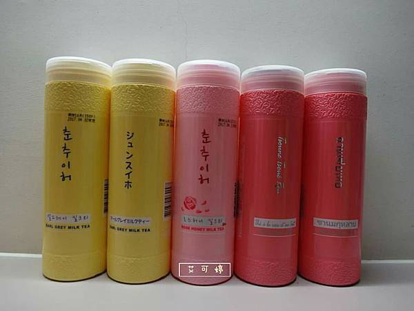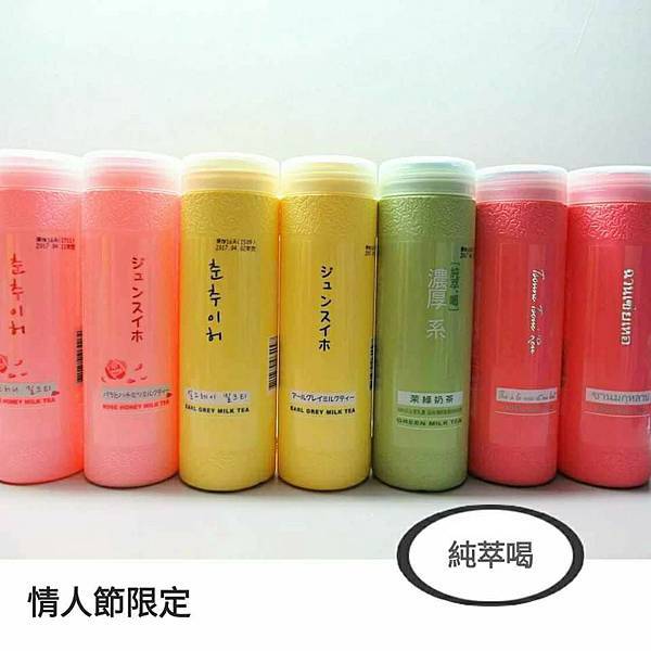 最右邊:桃紅色包裝的玫瑰奶茶在全家販售