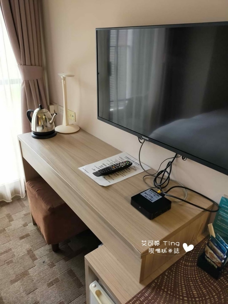 提供電視、水壺、檯燈、水杯、茶包、水、冰箱
