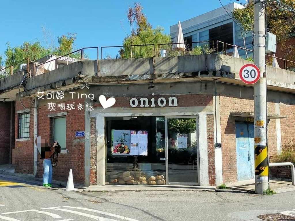 一從聖水站走出來約2-3分鐘就看到onion cafe,聖水店外觀有種廢虛感,蠻顯眼的