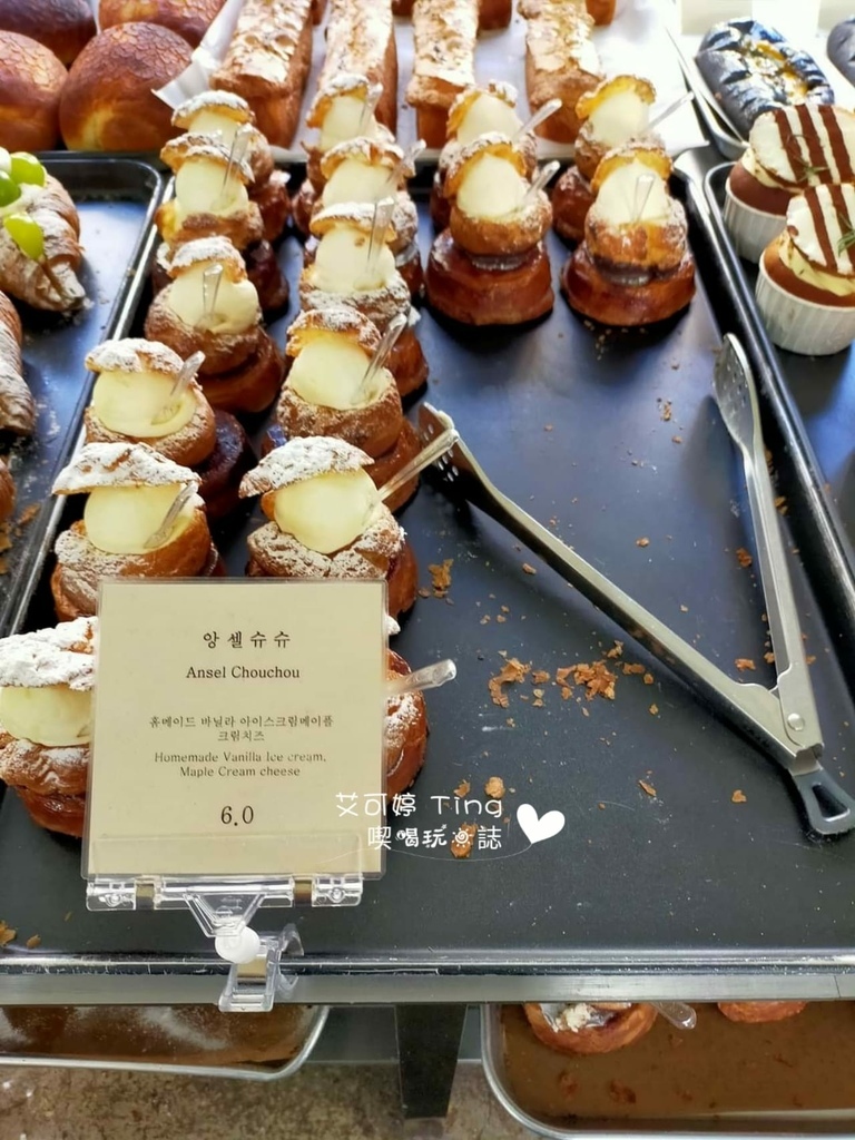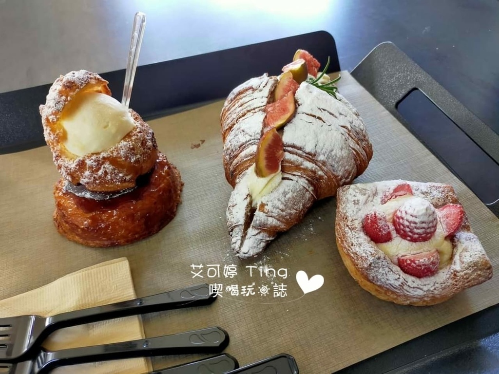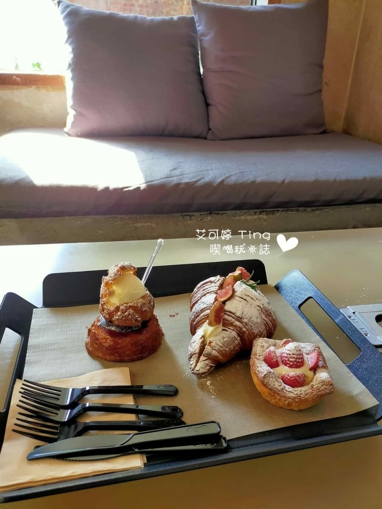 麵包種類很多,麵包、甜點都是擺好陳列在桌上讓大家自己夾自己選想吃的
