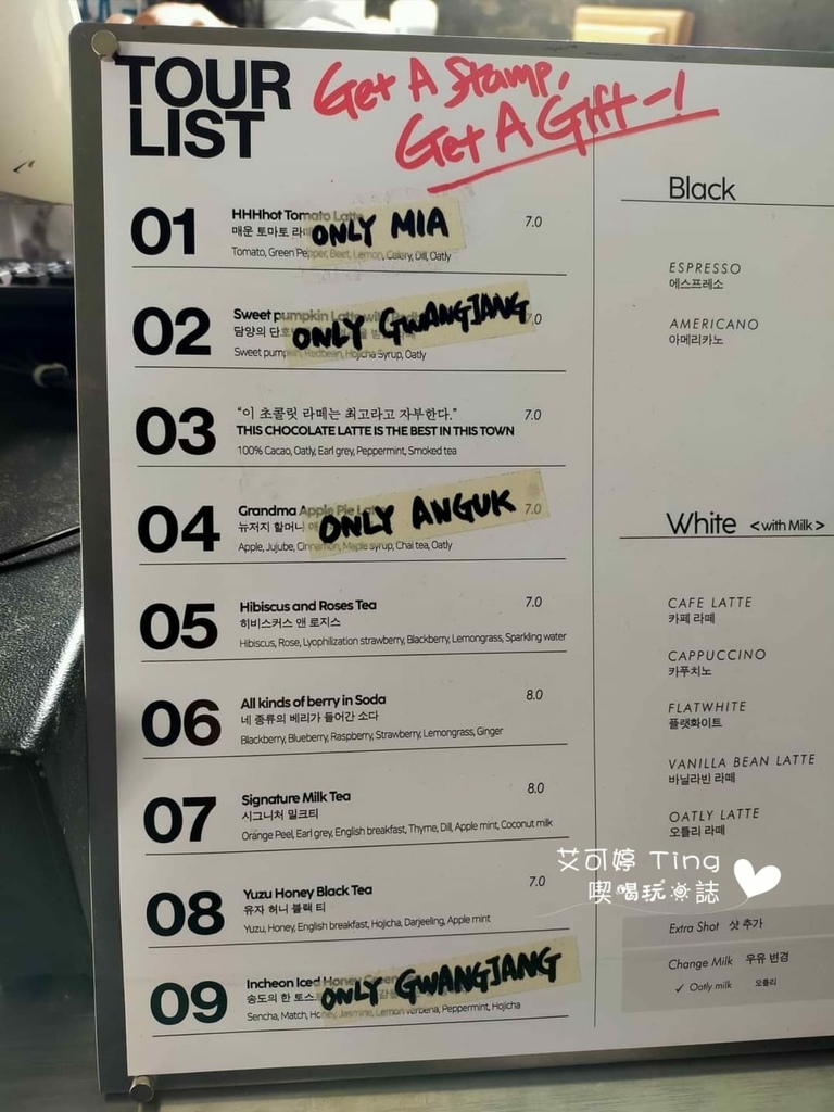 櫃檯前的飲料menu,友人問店員推薦哪個飲料,是推薦03號,但友人其實不太想點飲料,畢竟不便宜,所以只點一杯店員很懷疑又錯愕