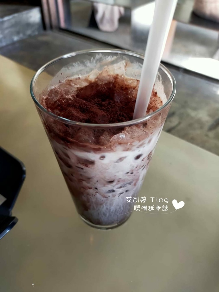 【초콜릿라떼】-7000韓元,上面是香草冰淇淋搭配奶油起司,下面是咖啡味的千層,整體來說不難吃,但我不喜歡咖啡味