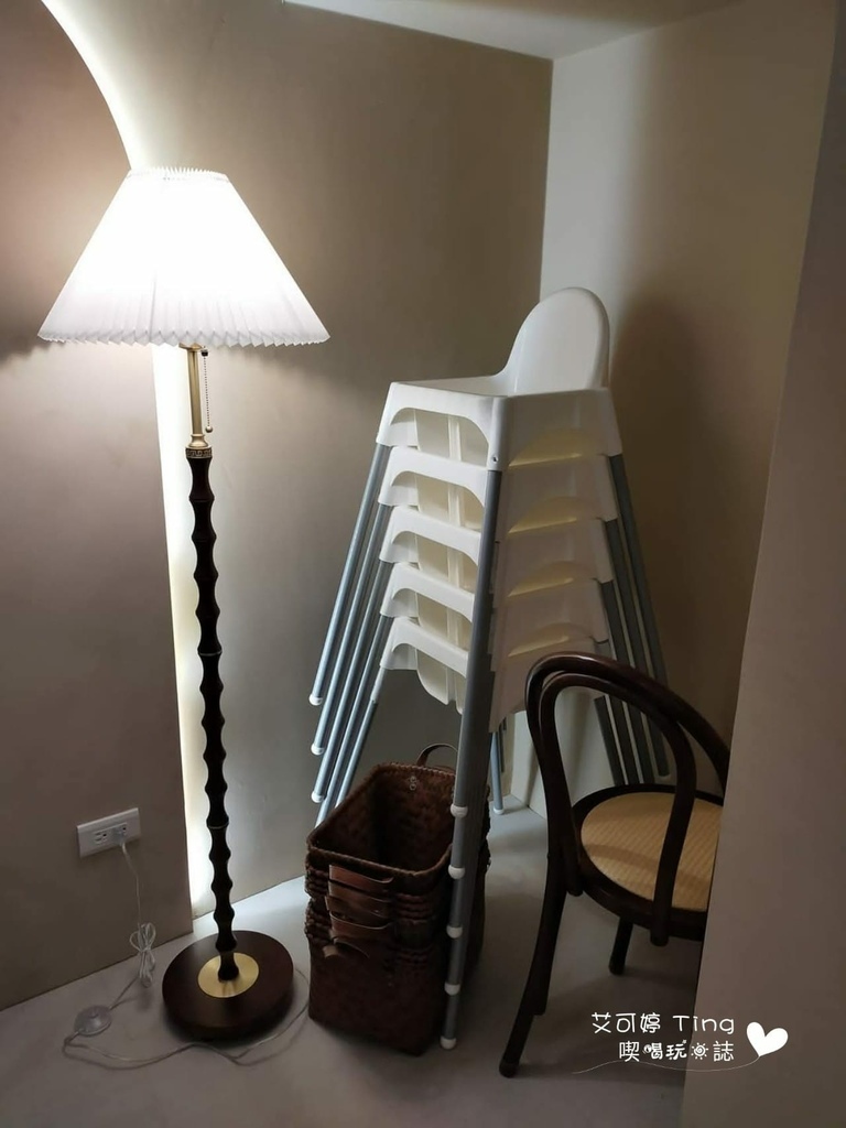 樓梯走上來的角落有擺放兒童座椅,這家還有寵物友善餐廳,除了飛禽類暫不接待~