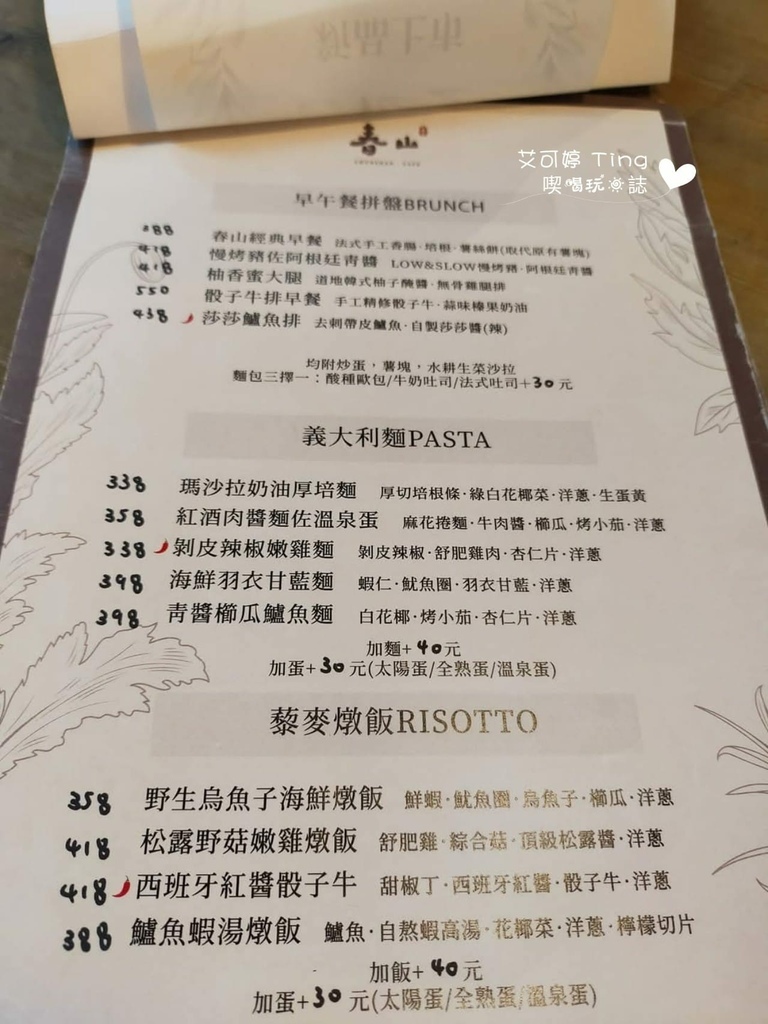 餐點價格介於260-438元,除了新上市的小點心120-200元、湯品100-120元、食材加點30-160元