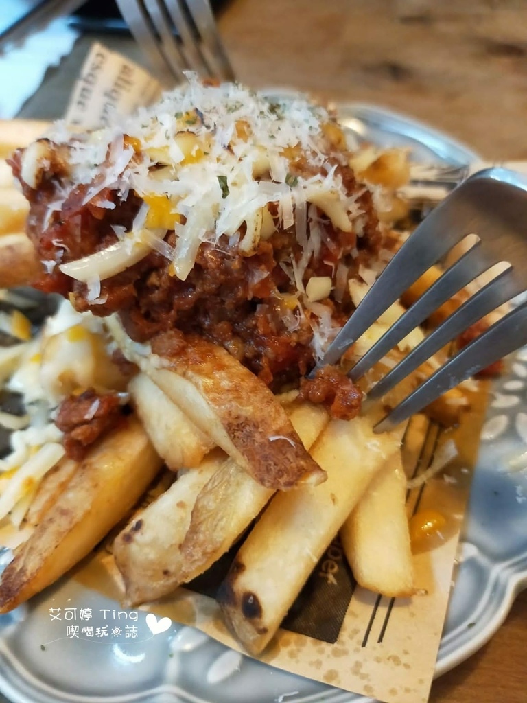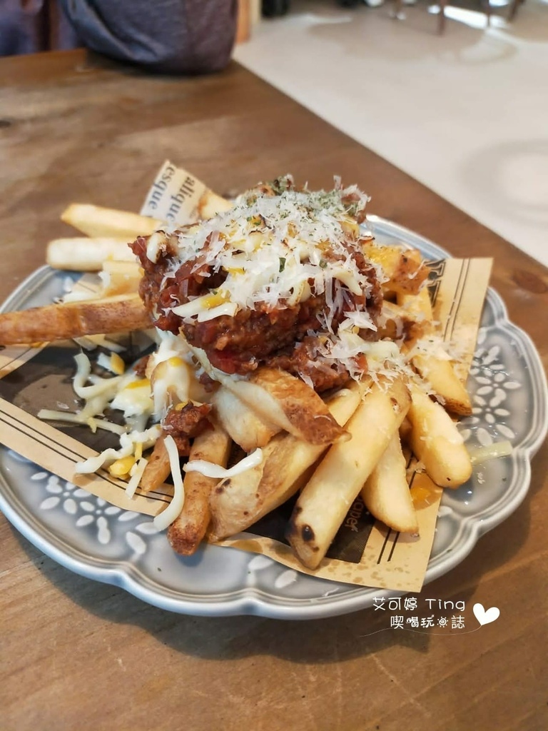 肉醬起司薯條-200元,肉醬給的不少,加上起司牽絲,不過薯條偏軟