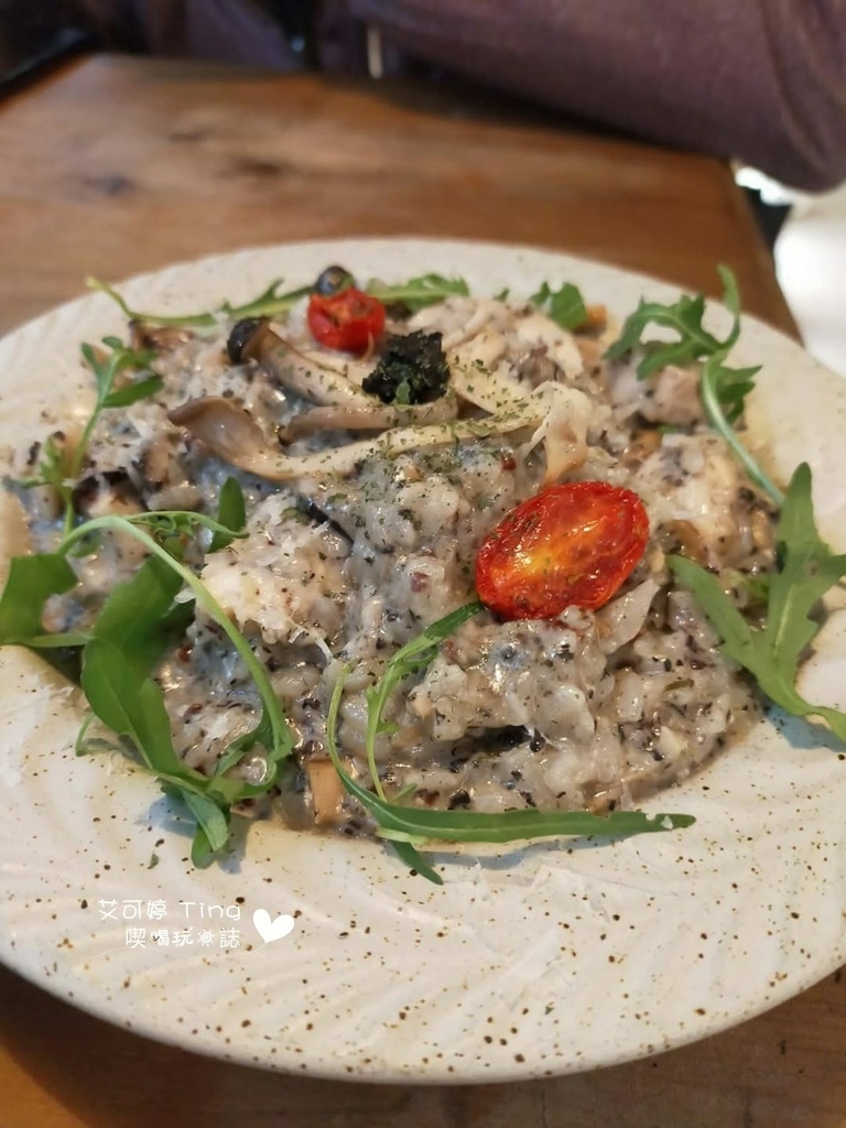 松露野菇嫩雞燉飯-418元,菇類不少,看我弟都吃完,整體還算合他胃口拉